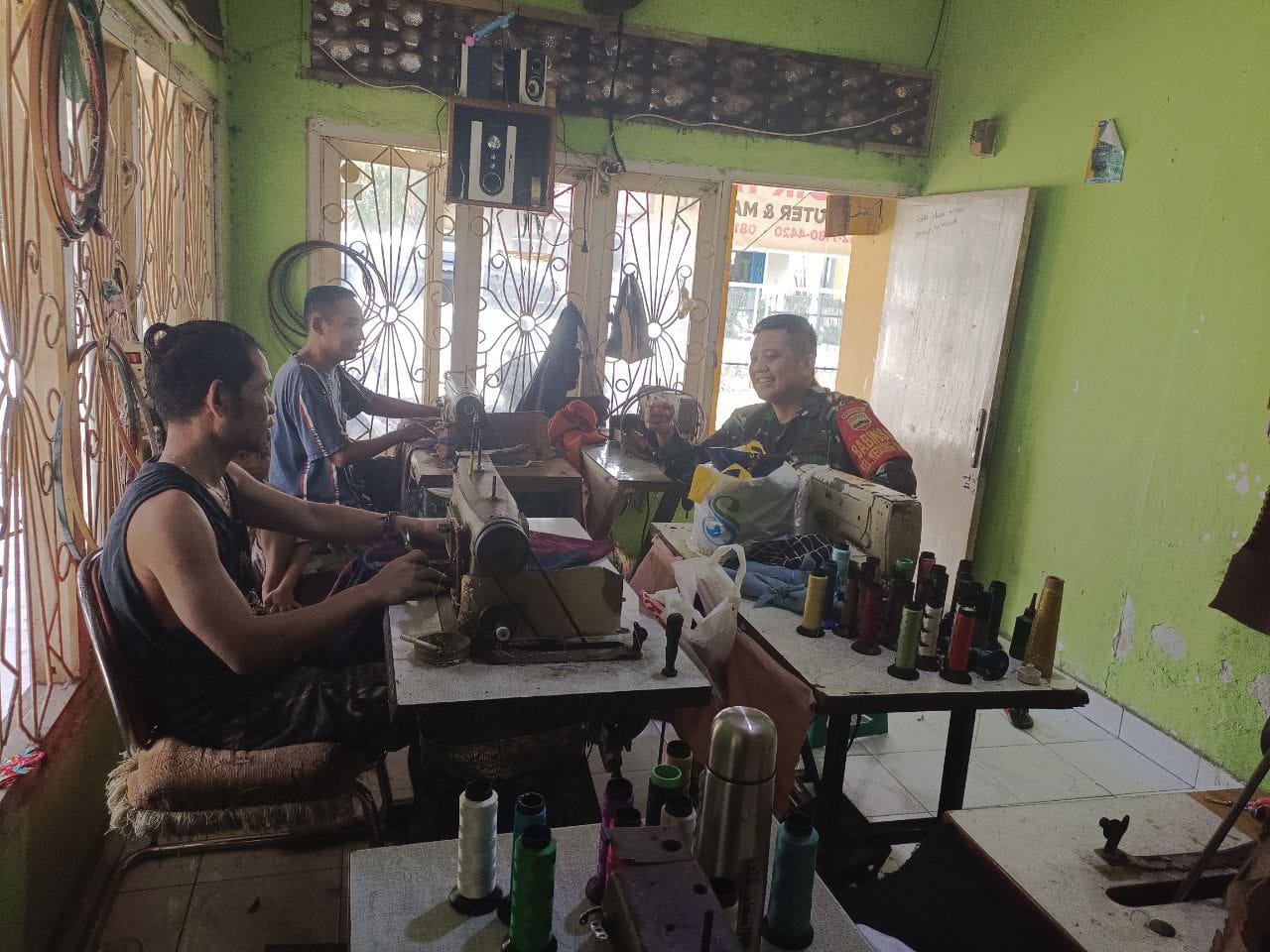 Babinsa Serka Kusman Darmanto Koramil 06/SKJ Kodim 0301/PBR melaksanakan Komsos dengan Pemilik Usaha Bordir, Jajang Jalan Lili Kelurahan Kedungsari Kecamatan Sukajadi Kota Pekanbaru, Selasa.