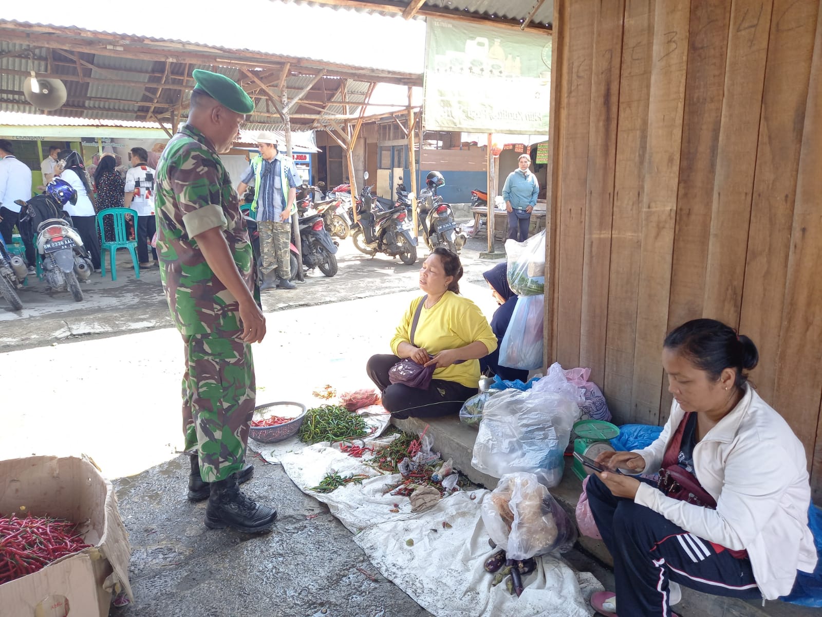Babinsa Koramil 06/Sukajadi Kodim 0301/Pekanbaru, Serma Budi Mulia melaksanakan interaksi sosial bersama warga dan pembeli dalam melaksanakan kegiatan penegakan disiplin mematuhi protokol kesehatan di pusat perbelanjaan yang berada di Jalan Tuanku.