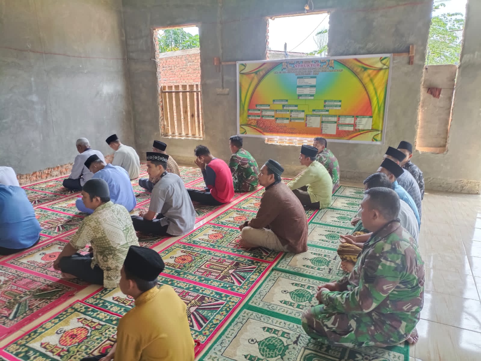 Ditengah kesibukan melaksanakan aktivitas fisik di lokasi Pra TMMD, mendengar alunan suara adzan berkumandang, Personel Kodim 0301/PBR bersama rekannya yang lain untuk melakukan sholat Jumat bersama warga di Masjid Jami'ul Barokah Jalan Bunga Tombak.