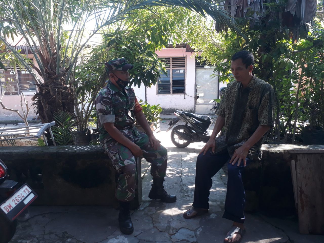 Sertu Usup, Babinsa Koramil 06/Sukajadi kodim 0301/Pekanbaru melaksanakan giat Komsos dengan Ketua RW 01 Arrahim di Jalan Melati gang Prakarsa RT 03 RW 01 Kelurahan Sukajadi Kecamatan Sukajadi Kota Pekanbaru dalam rangka menjalin silaturahmi Babinsa.