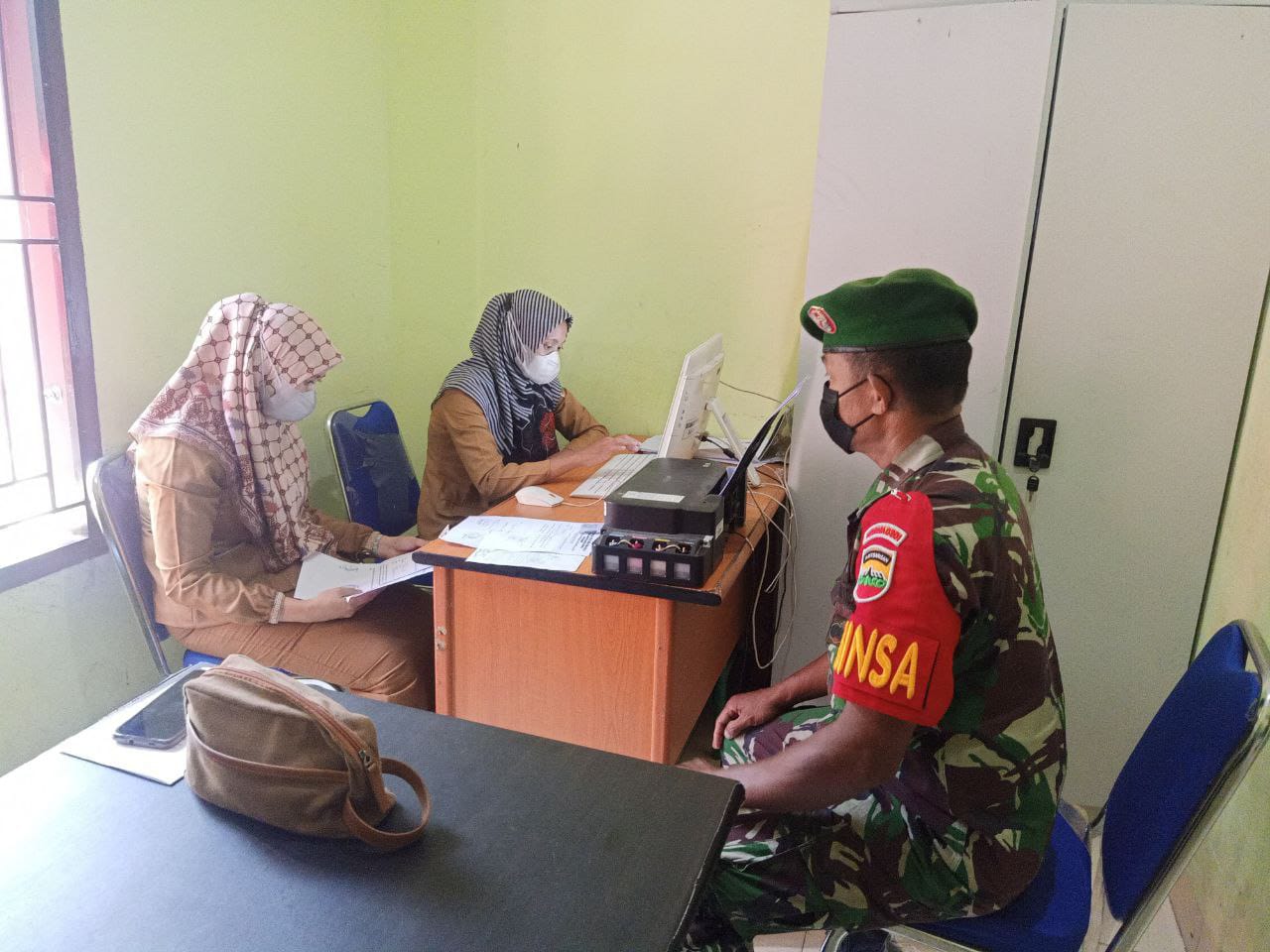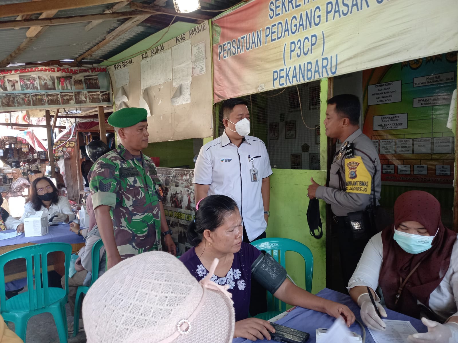 Babinsa Serma Budi Mulia bersama Bhabinkamtibmas Aipda Sigit Kurniawan melakukan pendampingan Puskesmas Langsat dalam kegiatan pemeriksaan Penyakit Tidak Menular (PTM) di Sekretariat P3CP Jalan Tuanku Tambusai Kelurahan Jadirejo Kecamatan Sukajadi,.