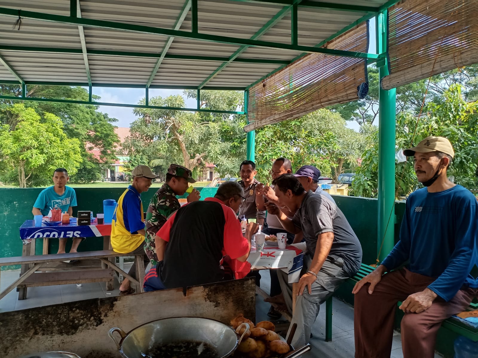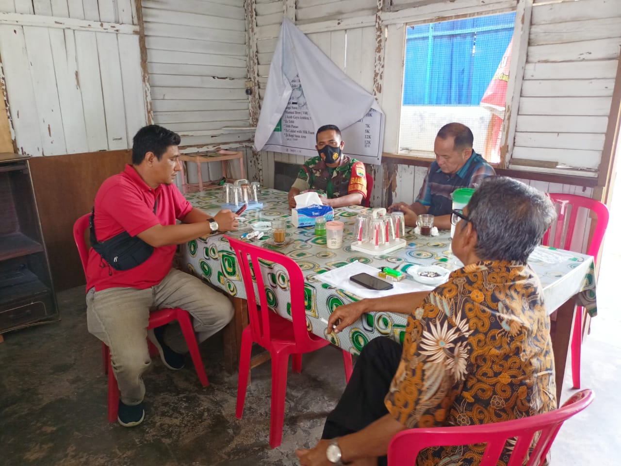 Sertu Parjo Babinsa Kelurahan Harjosari Koramil 06/Sukajadi Kodim 0301/PBR melaksanakan komsos dengan Ketua RT 01 Tupandi, Babhinkamtibmas Aiptu M Fakhrul dan warga di Jalan Jati kecamatan Sukajadi kota Pekanbaru, Sabtu.