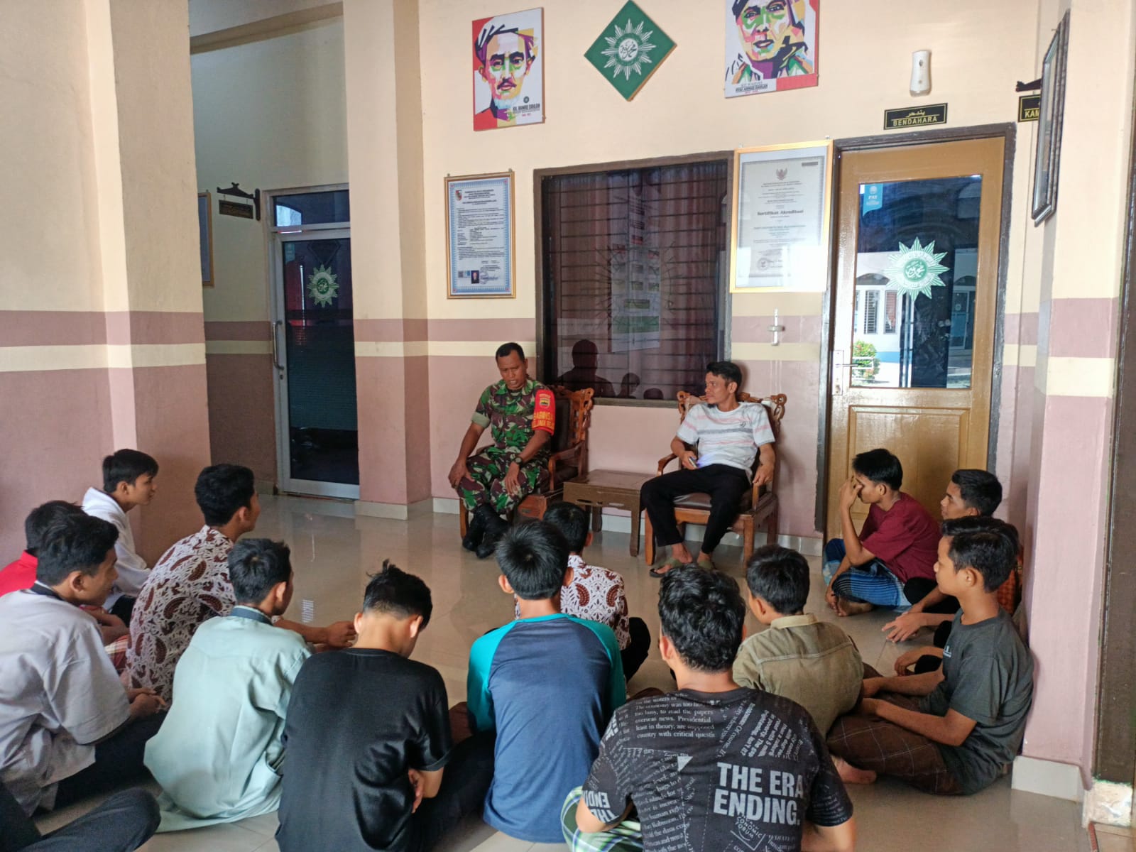 Babinsa Koramil 06/Sukajadi Kodim 0301/PBR, Serma Budi Mulia memberikan materi Wawasan Kebangsaan (Wasbang) kepada anak-anak panti asuhan putra II Muhammadiyah Jalan Kesuma Kelurahan Jadirejo Kecamatan Sukajadi, Sabtu.