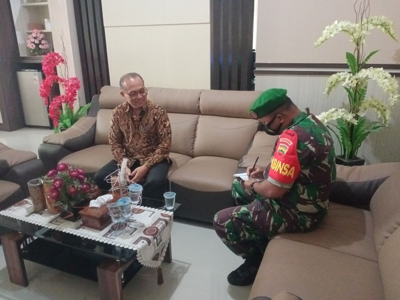 Babinsa Koramil 06/Sukajadi Kodim 0301/PBR, Serda Muhammad Fauzi melaksanakan Komsos dengan Ketua Sekolah Tinggi Ilmu Formasi Riau Enda Mora M. Farm. Apt di Jalan Bangau Sakti Kelurahan Simpang Baru Kecamatan Binawidya, Kamis.