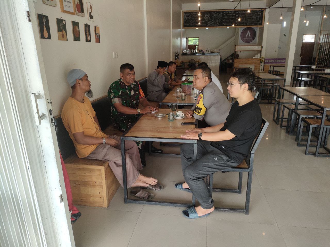 Serka Adeng bertugas di Satuan Koramil 06/Sukajadi Kodim 0301/PBR melaksanakan komsos bersama Ketua RT 03 Solehudin dan warga di warung kopi Jalan Kasuari RT 01 RW 09 Kelurahan Kampung Melayu Kecamatan Sukajadi, Senin.