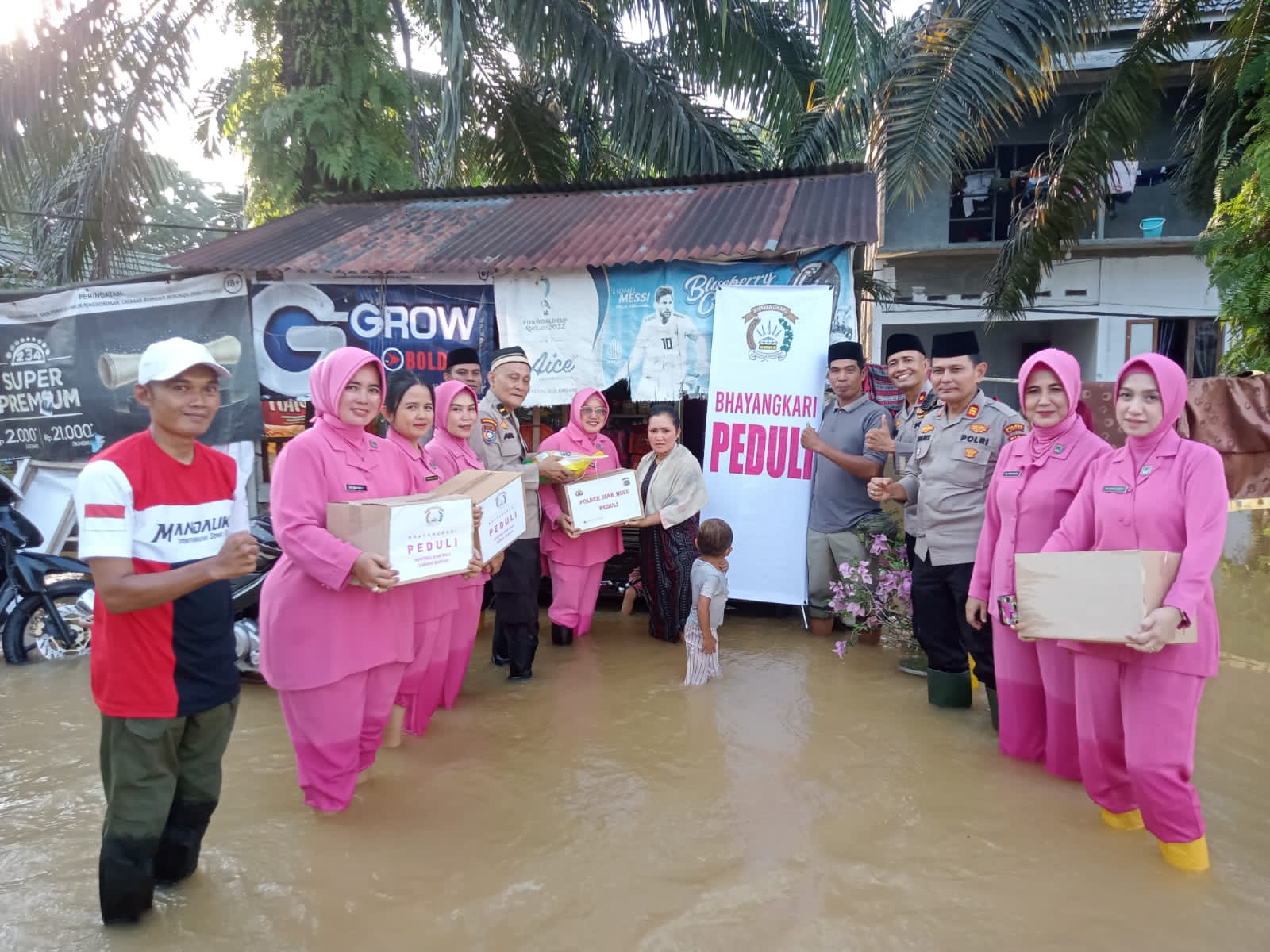 Polsek Siak Hulu dan Bhayangkari Salurkan Bantuan Sembako untuk Warga Terdampak Banjir di Desa Buluh.