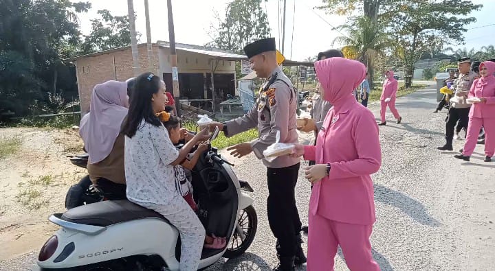 Berbagi Kebahagiaan di Ramadhan, Polsek Siak Hulu dan Bhayangkari Bagikan Takjil Gratis Kepada Warga
