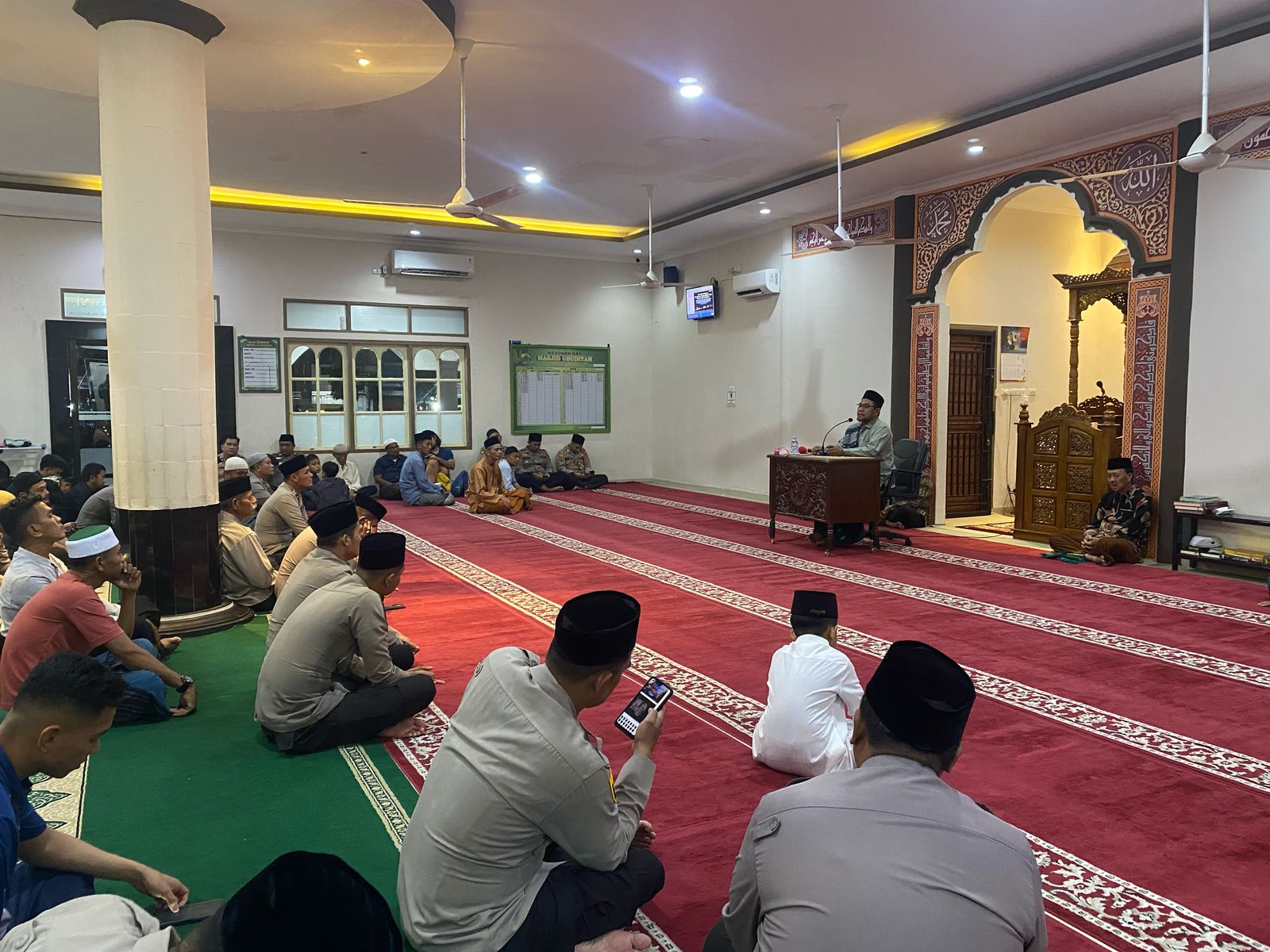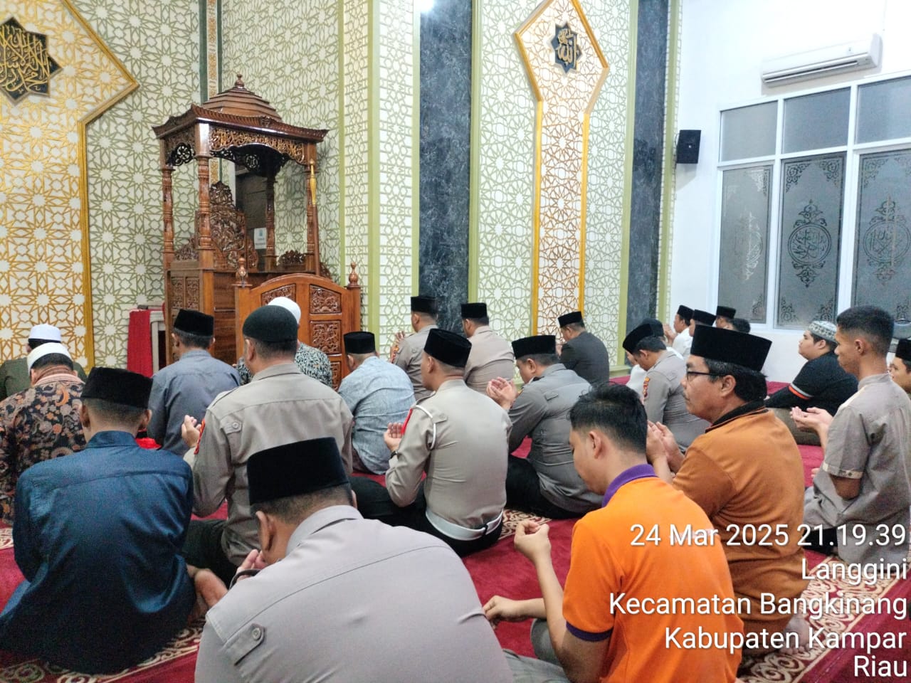 Personel Polres Kampar Ikut Sholat Tarawih di Masjid Ubudiyah Bangkinang.