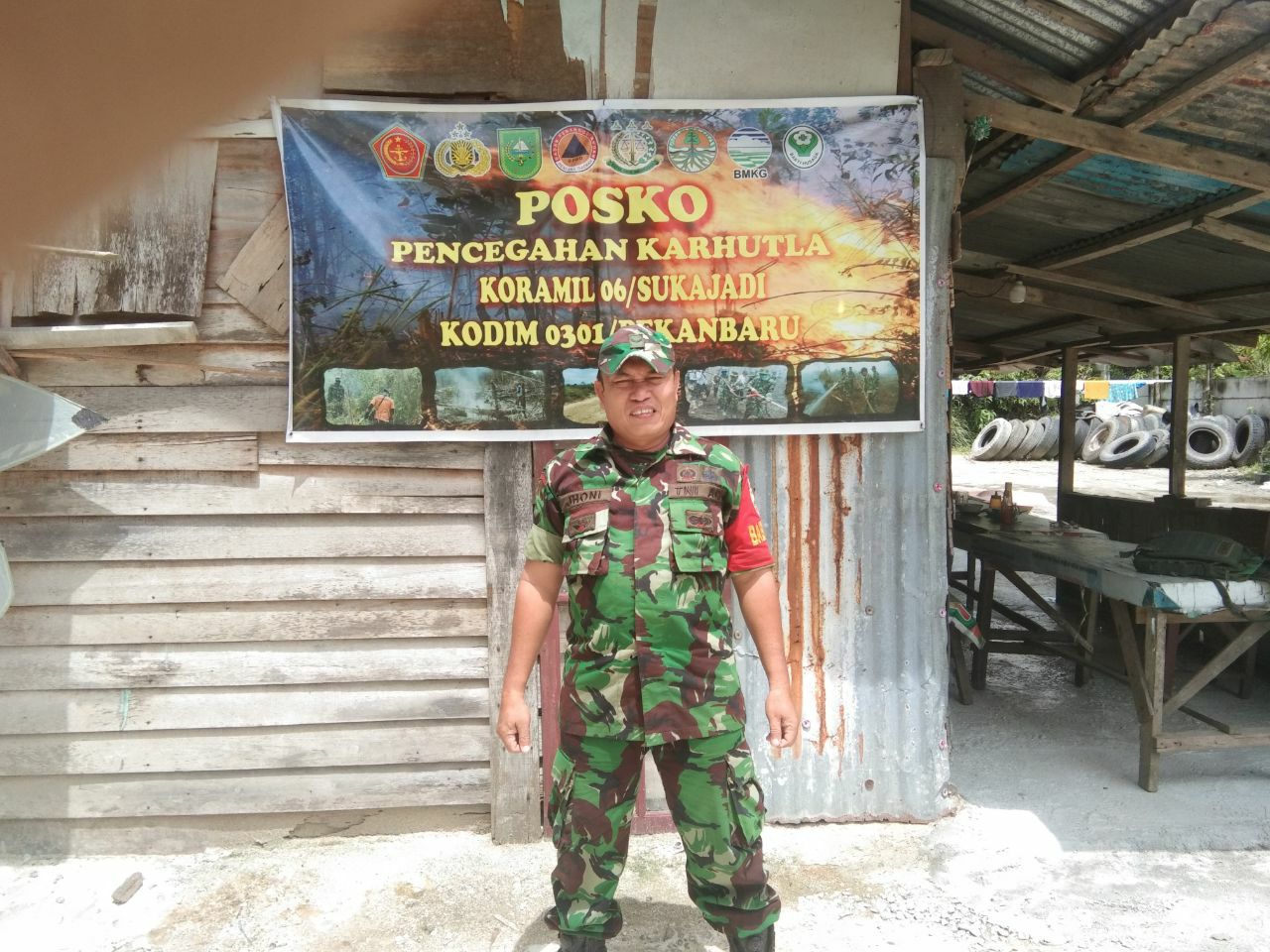 Bintara Pembina Desa (Babinsa) Koramil 06/Sukajadi Kodim 0301/PBR, Sertu Jhoni Janan dan Masyarakat Peduli Api (MPA) melaksanakan patroli dan sosialisasi Kebakaran hutan dan lahan (Karhutla) di wilayah Jalan Kabun RT 02 RW 03 Kelurahan Air Putih.