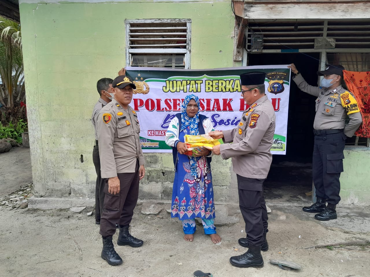 Indahnya berbagi kepada sesama bagi yang kurang mampu, itulah yang terus dilakukan oleh Polsek Siak Hulu. Sasaran Jumat Barokah ini wilayah Desa Baru Kecamatan Siak Hulu, Kabupaten Kampar, Jumat.