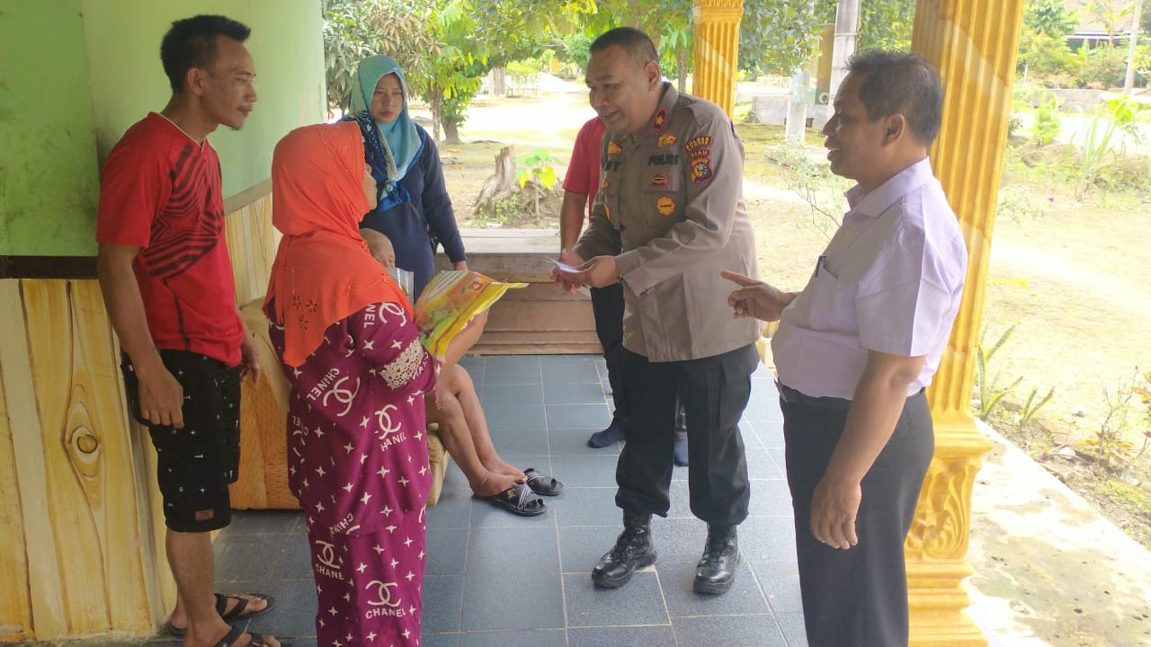Peduli, Polsek Tambang berikan bantuan sosial (Bansos) berupa sembako kepada korban kebakaran rumah, di RT 01 RW 02 Dusun II desa Rimbo Panjang kecamatan Tambang, kabupaten Kampar, Senin,.