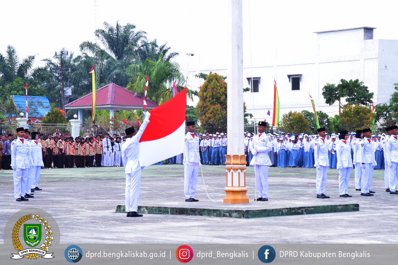 Anggota DPRD Dapil Kecamatan Pinggir mengikuti upacara bendera HUT RI Ke-77 di Halaman Kantor Camat Pinggir, Rabu.
