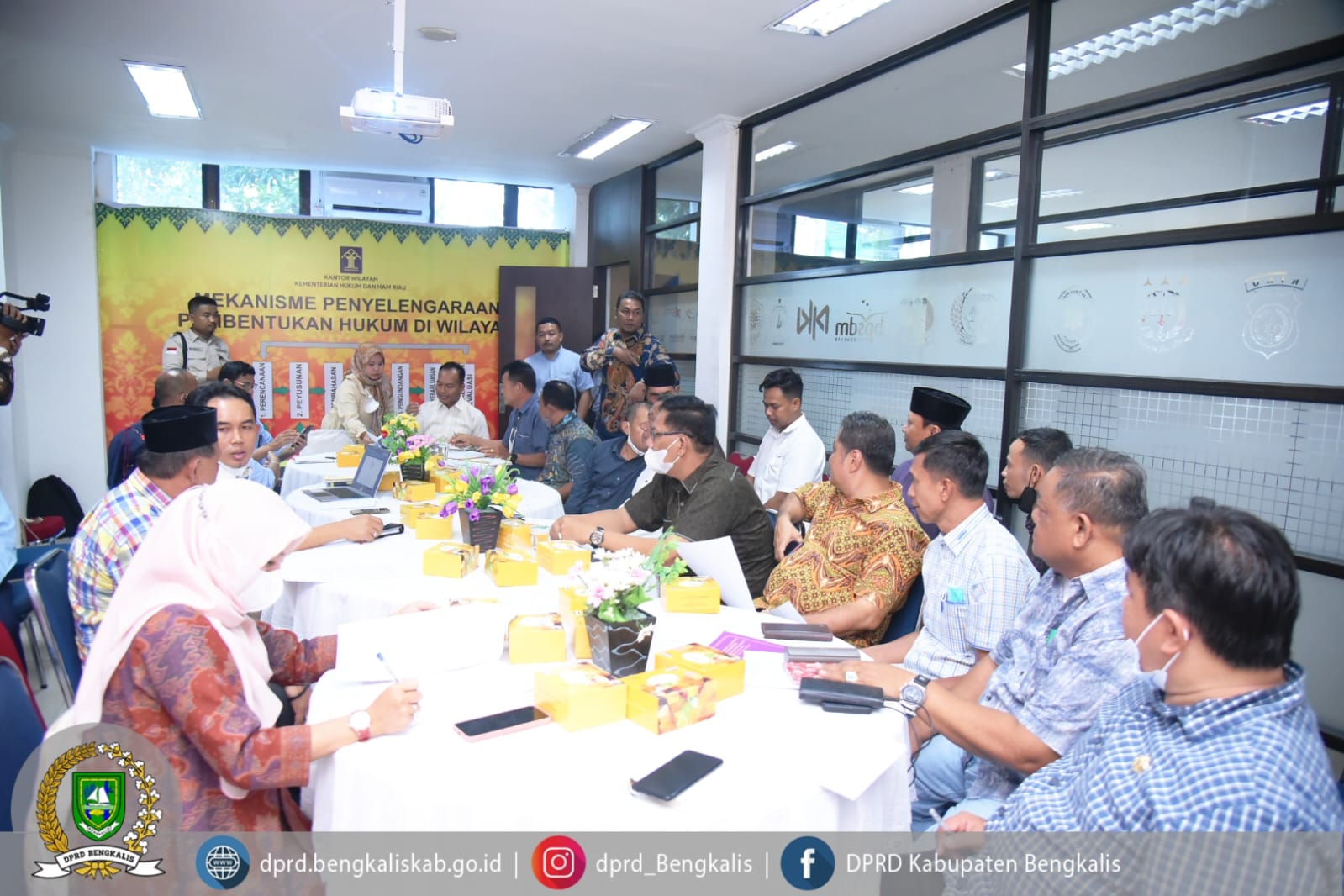 Pansus Ranperda Penyerahan Prasarana, Sarana dan Utilitas Perumahan dan Permukiman (PPSU) DPRD Bengkalis bersama OPD membahas Legal Drafting Ranperda di Kantor Wilayah Kementerian Hukum dan Ham Provinsi Riau, Jumat.